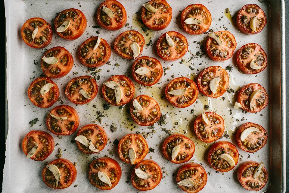 Вяленые помидоры отлично готовятся с минимумом дополнительных ингредиентов в обычной духовке.