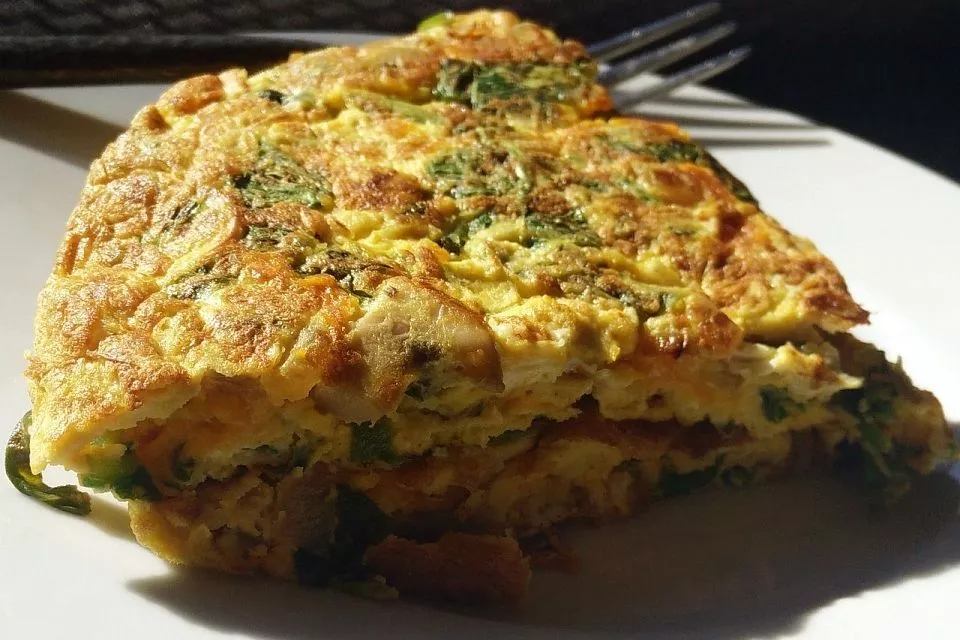 Пышный, сочный омлет с овощами станет вкуснее, если добавить в него свежую зелень или специи.