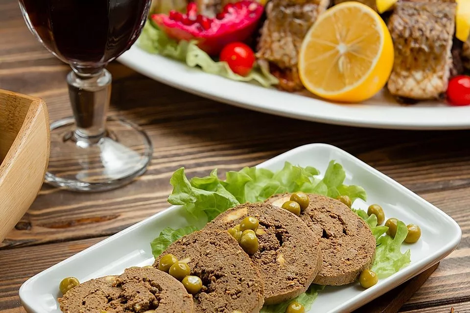 Помещаем в холодильник еще примерно на 1 час. Рулет из печеночных блинчиков готов. Нарезаем его кусочками и подаем в качестве праздничной закуски.