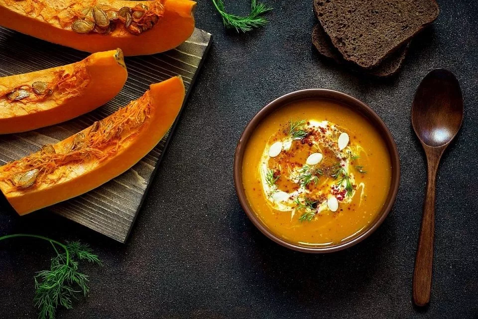 Чем холоднее становится на улице, тем острее потребность в густых сытных супах. Мы предлагаем приготовить пряный тыквенный суп-пюре с ароматом имбиря. Он не только порадует ярким цветом, но и быстро согреет.