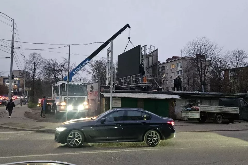 В кубанской столице демонтировали рекламный светодиодный экран, находившийся на пересечении улиц Стахановской и Круговой.