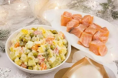 Оливье с копченой форелью: нежный, сочный, с дымком - мигом украшает любой новогодний стол