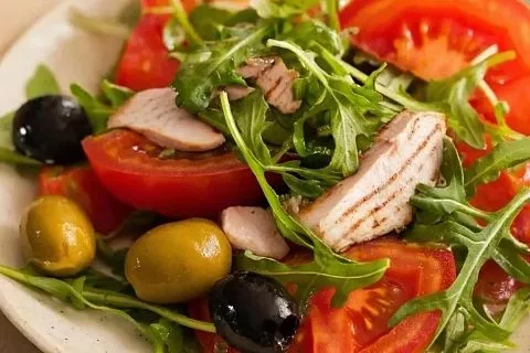 Этот салат отличная база для экспериментов. Если нет рукколы, возьмите молодой шпинат или микс салатных листьев.