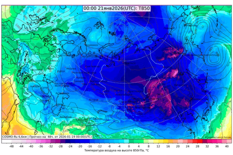 — Сильные морозы: до −45° в центральных районах Красноярского края и Забайкалье, до −49° в Иркутской области и Бурятии.