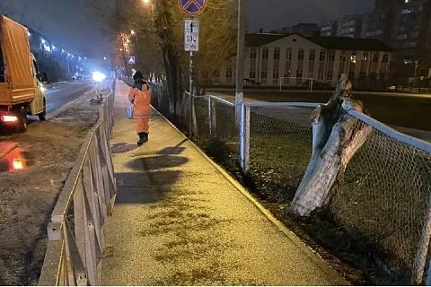 Для обработки тротуаров, остановочных комплексов, подземных и надземных пешеходных переходов, а также внутриквартальных территорий и подходов к социально значимым объектам с раннего утра работают около 700 человек и спецтехника.