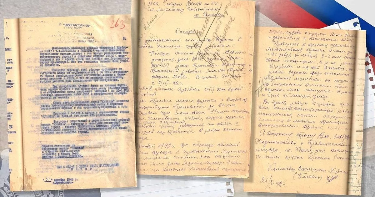 В рассекреченных материалах содержатся рапорт о результатах разведки, донесение командира спецгруппы и справка о ее боевой деятельности. Пятого августа 1942 года Управлением НКВД СССР по Краснодарскому краю для выполнения спецзадач в тылу противника была создана оперативная разведывательная группа «Кубанцы». Она дислоцировалась при фронтовой полосе в хуторе Шевченко близ Горячего Ключа и состояла преимущественно из рабочих и служащих Краснодара.