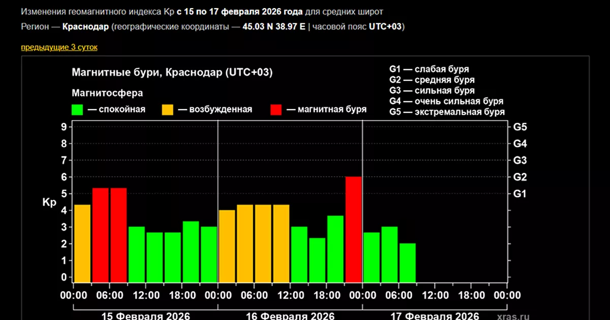 Самая сильная с начала месяца магнитная буря – уровня G2 – неожиданно ударила минувшей ночью по Земле. Об этом 17 февраля сообщили в Лаборатории солнечной астрономии ИКИ и ИСЗФ РАН