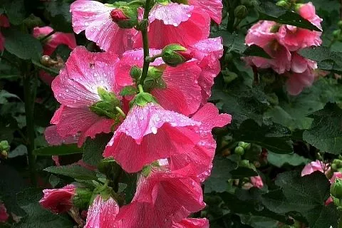 Шток-роза, или мальва, получила свое название благодаря высокому, похожему на шток, стеблю и большим, словно розы, цветам.