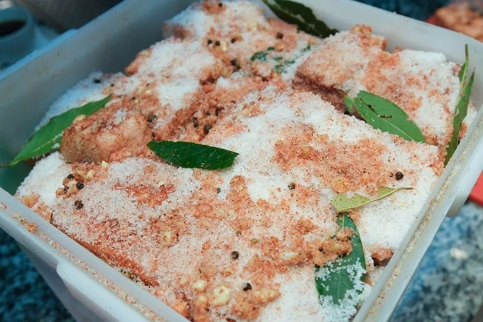 – Прежде чем приступить к засолке, важно правильно выбрать сало. Оно должно быть свежим, без посторонних запахов и пятен. Лучше всего использовать сало с прослойками мяса – оно получится более нежным и вкусным. Толщина кусочков должна составлять около 3–5 сантиметров, – комментирует шеф-повар, специалист по традиционной русской кухне Валерий Прибытков.