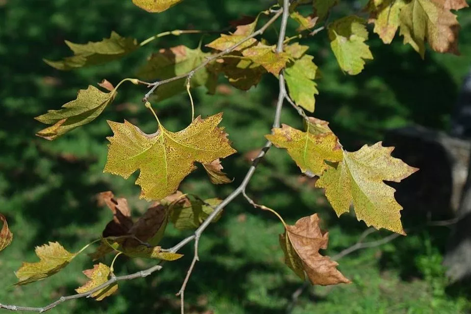 Заболевания или атаки вредителей ослабляют дерево и изменяют его физиологические процессы. Это ведет к задержке сброса листьев.