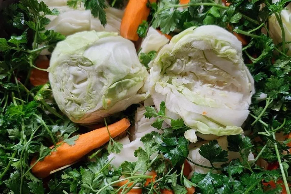 – Очень важно правильно нарезать овощи. Лично я режу капусту на пирамидки, чтобы куски оставались целыми. Свеклу нарезаю полукольцами сантиметровой толщины. Морковь тоже крупными кольцами делаю. Потом все это складываю в эмалированную или керамическую кастрюлю. Добавляю очищенный чеснок и перец. Теперь осталось сделать рассол, – объясняет огородник, специалист по домашней консервации Людмила Якушева.