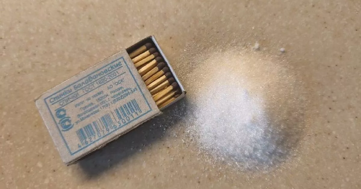 Состав средства очень прост. Надо смешать 1,5–3 части сахара с 2 частями извести. Например, для одного костра достаточно взять 3 чайные ложки сладкого ингредиента и 2 – оксида кальция (негашеная известь). В это количество потребуется сера с головок 10 спичек. Ее надо измельчить до состояния порошка, добавить в смесь и тщательно перемешать до однородной массы. Розжиг готов.