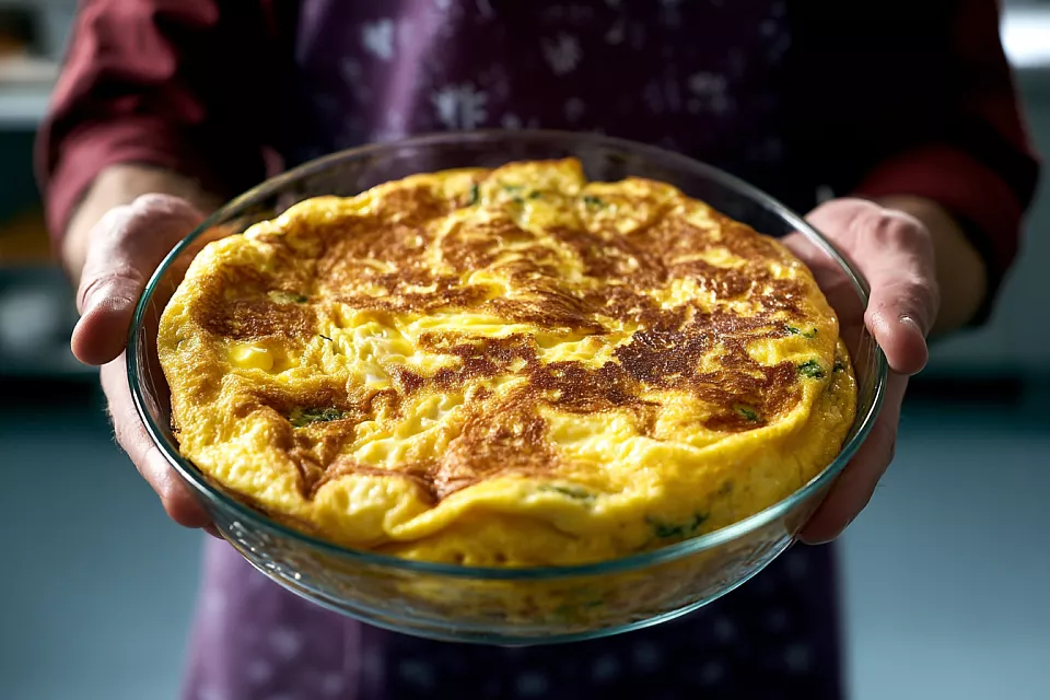 Особая магия — в технологии. Сначала форму тщательно смазывают маслом (раньше её ещё присыпали сухарями по краям), затем яйца взбивают. Не до пены — просто аккуратно перемешивают. Добавляют растопленное сливочное масло, потом молоко. И всё — в горячую духовку на 200°C, примерно на 20 минут. Омлет сначала поднимается, как воздушный шар, а потом немного оседает — это нормально. Главное — пористая, сочная структура внутри.