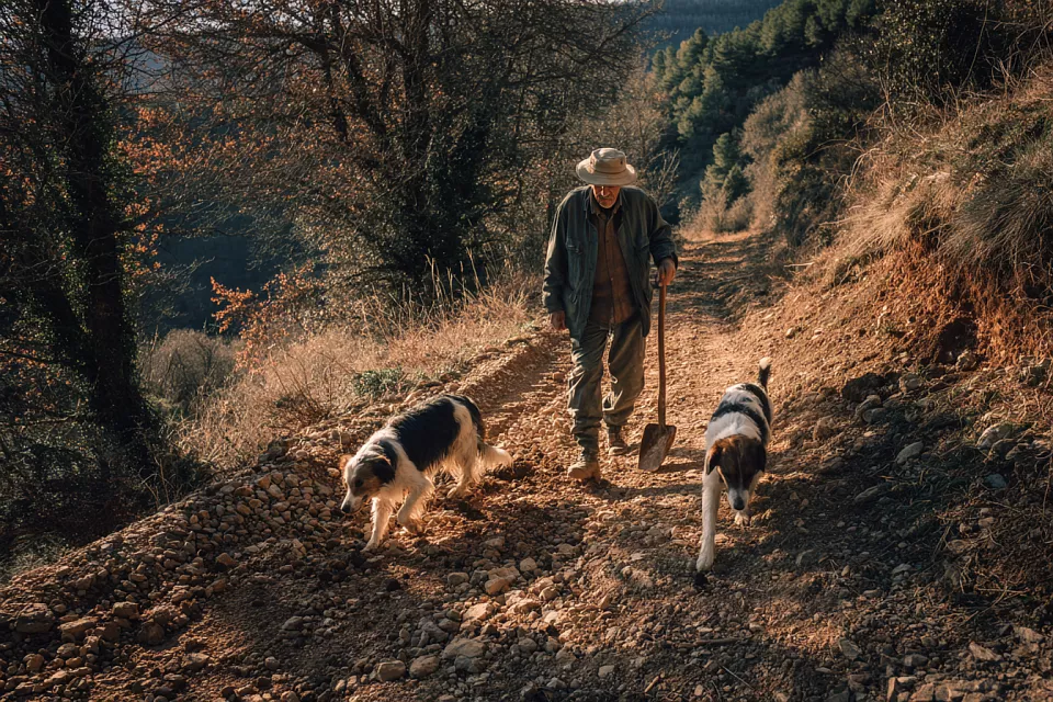 Каждое утро зимой Хавьер выходит в поле с рюкзаком, ножом и парой псов. У собак — одно задание: найти трюфель. Тот самый, чёрный, ароматный, ценный. «Если пропустишь хоть пару дней — всё, собака забудет», — объясняет он. Учить приходится долго, а премия — за каждый найденный гриб.