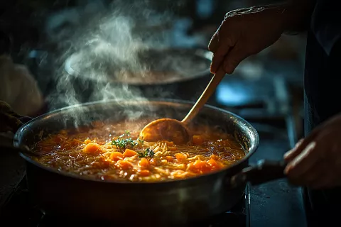 Если вам нужен быстрый и ароматный суп — попробуйте турецкий суп с вермишелью. Это суп с рисовой вермишелью, томатами, паприкой и сушёной мятой. Готовится буквально за 10 минут — идеально для ужина.