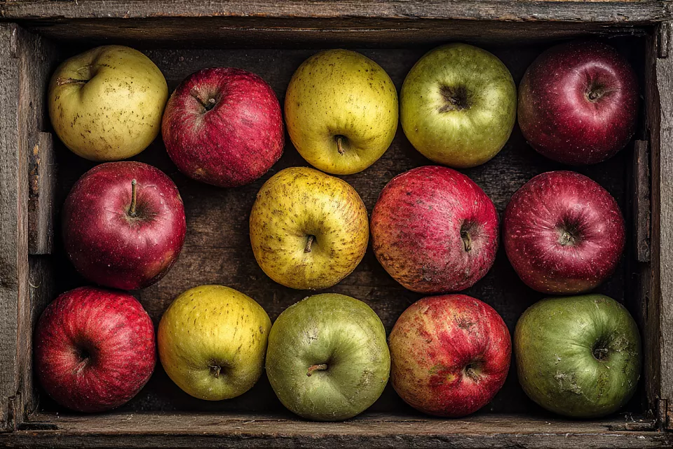 Некоторые сорта особенно хорошо подходят для долгого хранения. Плотная мякоть и позднее созревание позволяют этим яблокам пролежать в холодильнике до года без потери вкуса. Подойдут и другие поздние, плотные сорта, но обязательно только что сорванные — магазинные уже пролежали месяцы и вряд ли выдержат долго.