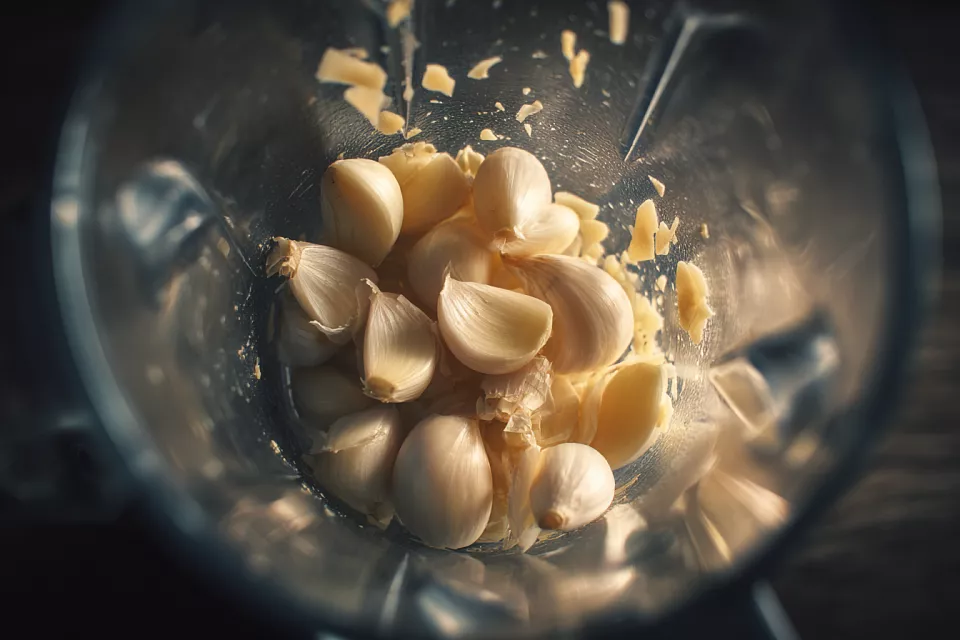 Чеснок загружают в блендер частями, чтобы масса легко перемалывалась. Добавляют примерно 1–1,5 стакана масла — оно играет роль естественного консерванта и придаёт мягкость вкусу. Специи и травы можно варьировать: добавить свежий кориандр, листья базилика или петрушку. Тогда паста приобретает зелёный оттенок и новый аромат.