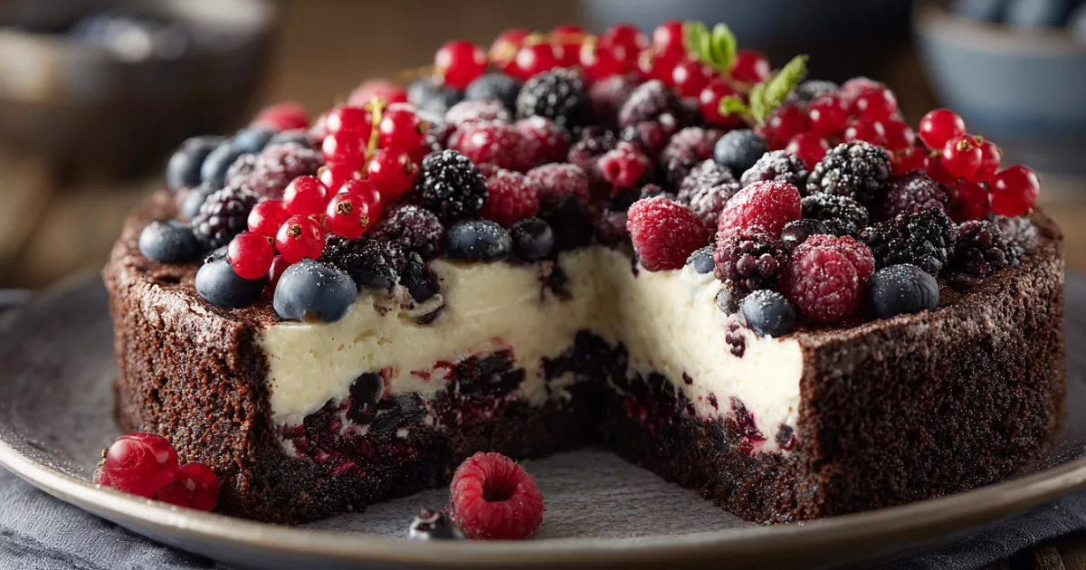 Шоколадный пирог с нежной творожной начинкой и ягодами — настоящий взрыв вкусов!