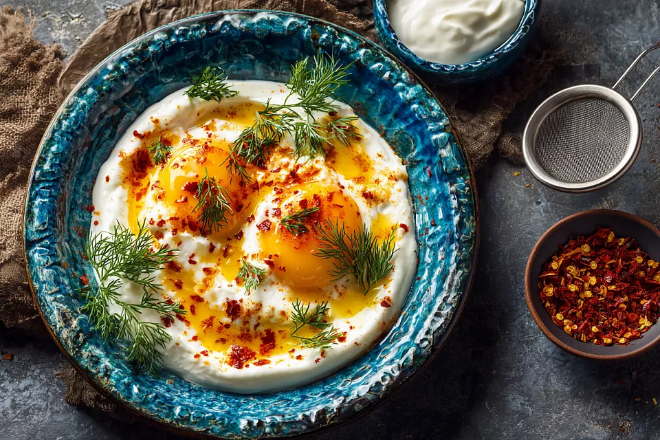 Чилбир — лёгкий, ароматный завтрак с нежными яйцами, чесночным йогуртом и пикантным маслом. Евгения Ким рекомендует заготовить яйца на 3 дня вперёд для быстрого приготовления. «Это проще, чем кажется — пробуйте и наслаждайтесь!» — говорит она.