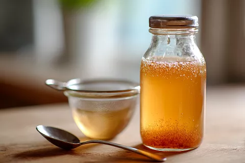 Дальше оставьте банку в покое примерно на два месяца: жидкость осветлится, мякоть осядет, появится характерный уксусный аромат. По желанию профильтруйте через марлю, разлейте по бутылкам и дозревайте в прохладе.