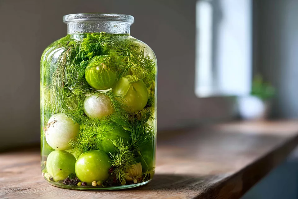 Зелёные помидоры под закваску: бутылёк к осени без спешки