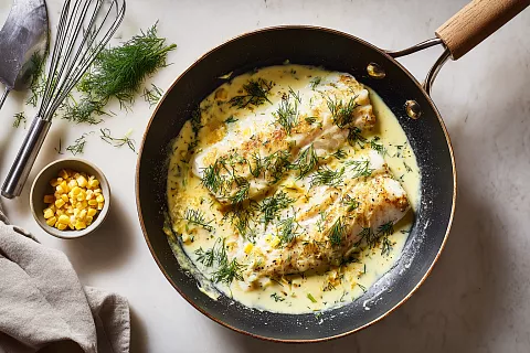 Рыба без разморозки, золотистая корочка и укропный бешамель — сочный ужин за 15 минут на плите