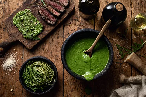 Простой зелёный соус из рукколы, орехов и сыра: минутное приготовление и море вариантов, с чем подать.