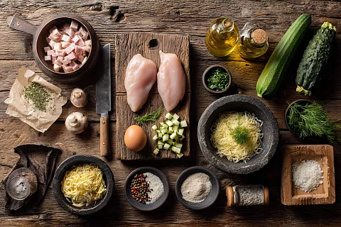 Чтобы фарш было проще нарезать и перемешивать, грудку можно слегка подморозить. Кабачок обязательно хорошо отжимайте, тогда котлеты не будут «плыть» на сковороде. И не жалейте времени на вымешивание: чем ровнее распределены соль и специи, тем ярче вкус.