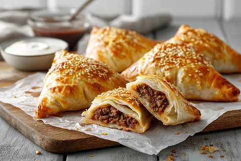 Слоёная самса с мясом в духовке: бездрожжевое тесто, сочная начинка с луком