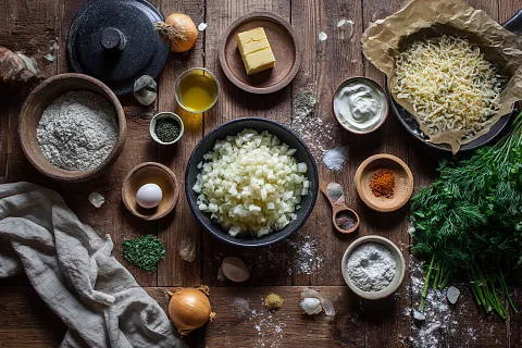 Здесь важно не только то, что внутри, но и само тесто: оно не нейтральное, а с характером — хорошо подсоленное, ароматное, с травами. Лук в такой компании перестаёт быть просто овощем и превращается в полноценную начинку, которую едят с удовольствием даже те, кто обычно лук не любит.
