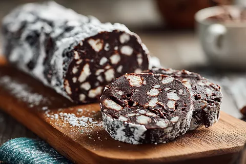 Шоколадная колбаса из детства – 10 мин замеса, 2 ч в холодильнике, тает во рту без выпечки