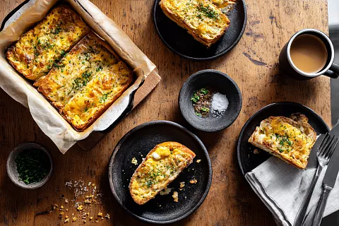 Вместо жарки на сковороде мы запекаем хлеб в духовке, поэтому на кухне нет лишнего масла и дыма, а корочка получается румяной и аккуратной. Такой завтрак удобно подать к утреннему чаю, взять с собой на работу или дать детям в школу, он хорошо держит форму и остаётся вкусным даже остывшим.
