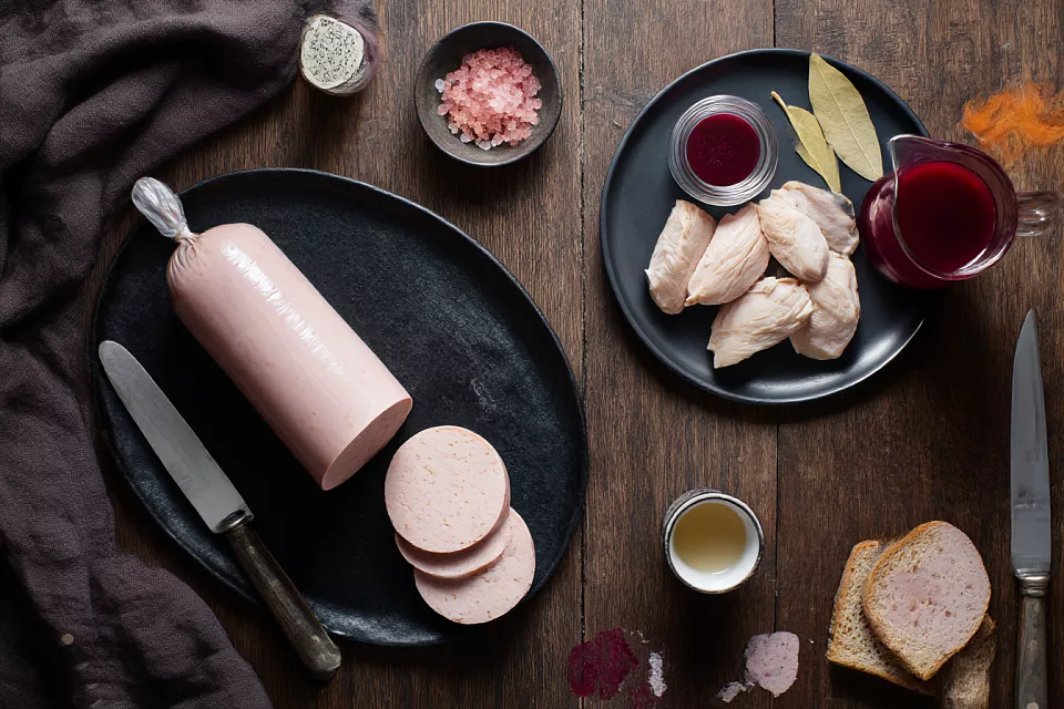 Покупную колбасу легко заменить домашней: курица, желатин и капля свекольного сока дают аккуратный «докторский» вид и мягкий вкус
