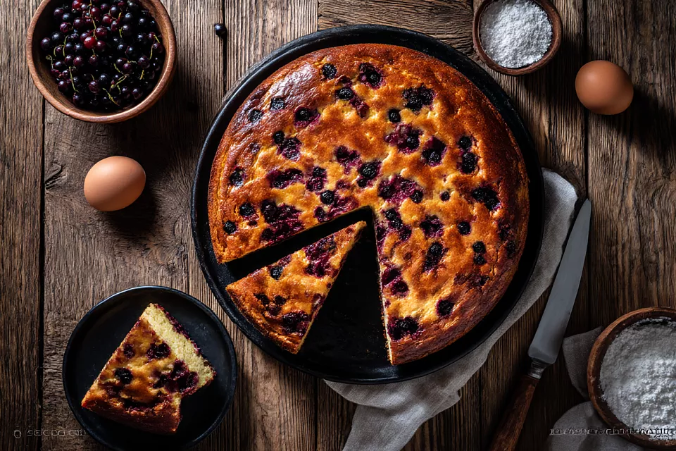 Если хочется «праздничнее», в источнике советуют варианты: посыпать миндалём, добавить ложку вишнёвого варенья или даже слегка пропитать ромом. А для подачи можно положить рядом шарик фисташкового мороженого, но и просто так пирог получается сладкий, воздушный, с кисло-сладкими ягодами
