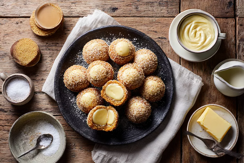 Нежные бисквитные кружочки, заварной крем и крошка сверху — просто, быстро и очень по-домашнему