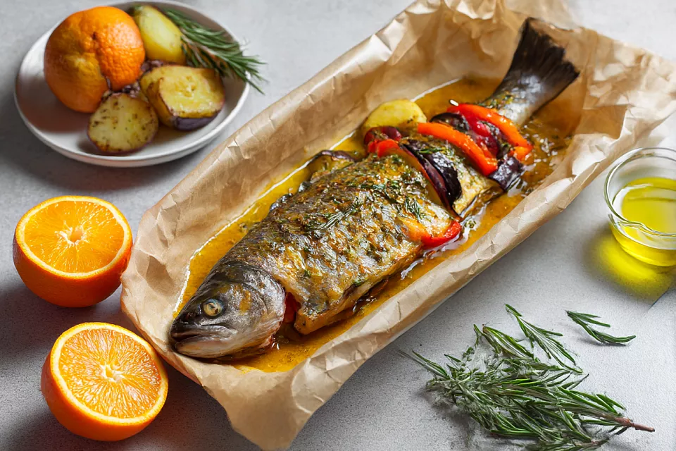 Форель в апельсиновом соке: запекаю целиком с овощами, что на праздник не стыдно