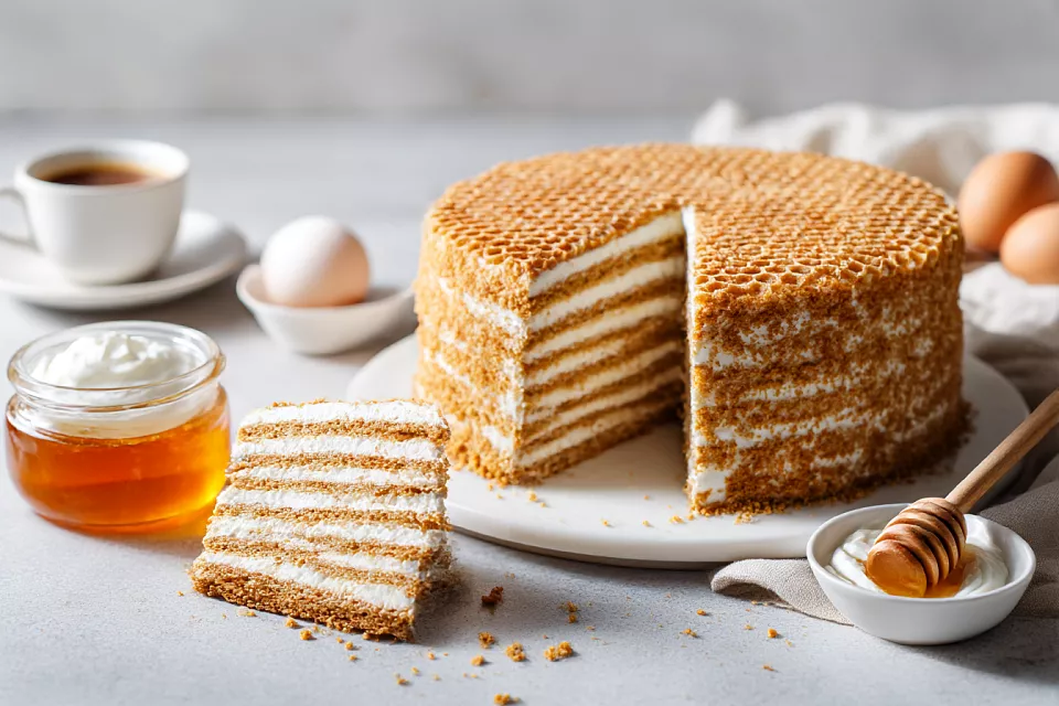 Медовик за полчаса без раскатки: два коржа, много крема, и всё получается