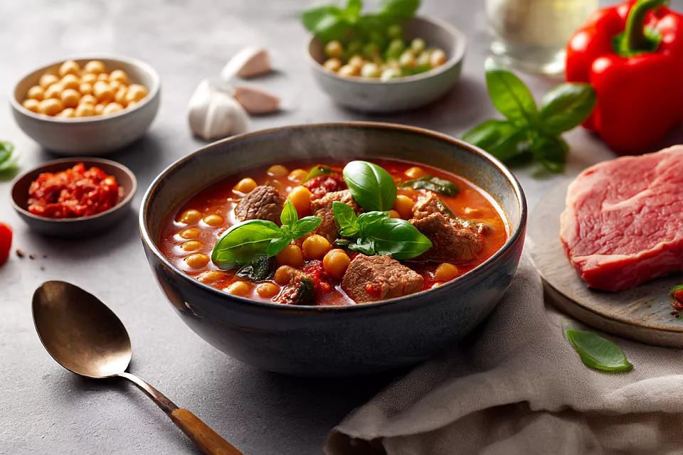 Говядина с нутом по-восточному: сочное рагу с запечённым перцем и томатами