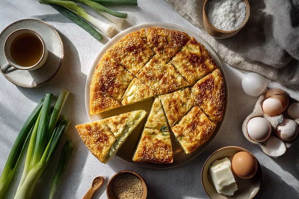 Пирожков хочется, а возиться не хочется: быстрый пирог с яйцом и зелёным луком на сметане