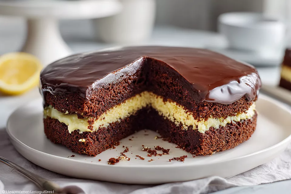 Шоколадный влажный брауни-бисквит, самый вкусный манно-лимонный крем из детства и тонкая шоколадная глазурь — домашний торт, от которого невозможно оторваться.