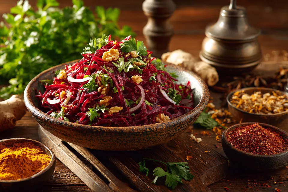 Яркий, пряный, с хрустящими орехами и лёгкой кислинкой – этот свекольный салат по-грузински давно стал у меня любимым.