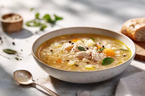 Диетический, но очень сытный суп с перловкой, кореньями и нежным куриным мясом — идеально для холодных дней и для тех, кто следит за фигурой.
