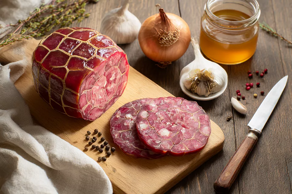Сальтисон без желудка: «праздничный зельц» из свиной головы, который держит форму без желатина