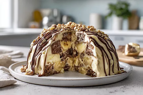 Это самый нежный торт без духовки — банановый крем и шоколадные коржи просто тают во рту.