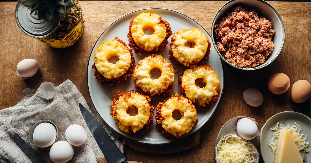 Если хочется действительно удивить гостей, попробуйте сочетание фарша и ананасов. Звучит смело, но на деле получается очень гармонично: нежное куриное мясо, сочный кружочек ананаса и сверху расплавленный сыр. И самое приятное — готовится это просто, без длинных списков продуктов и сложных техник.