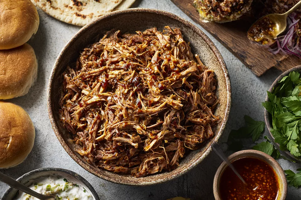 Рваную свинину можно класть в булочки со сметаной и чили-соусом, заворачивать в лаваш с овощами или просто есть с гарниром.