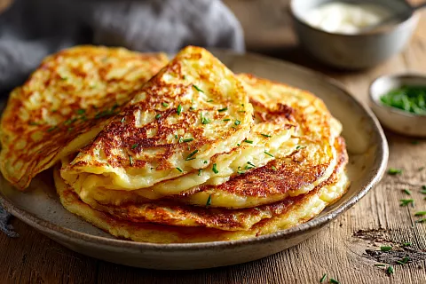 Картофельные блинчики: добавила молоко в тесто, и блины получились сливочными с хрустящей корочкой