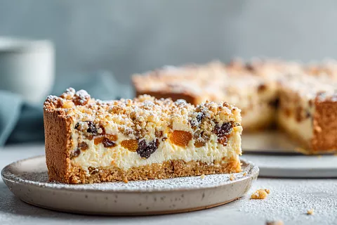 Тёртый пирог с творогом и сухофруктами: верхушка получилась хрустящей с ореховым ароматом