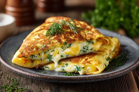 Яичный конвертик с сыром и зеленью — быстрый и уютный завтрак. Готовится за 10 минут, получается нежным и сытным.