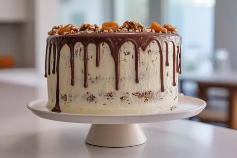 Сочный сметанный торт с курагой и черносливом: добавили орехи в тесто, и аромат получился очень насыщенным